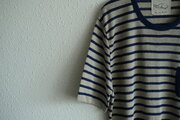 ケンランドのリネンニット、メンズサイズです。リネン100%のボーダー半袖で、1サイズのみの展開です。