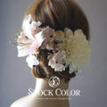 白金の和玉ピックも入った、上品で華やかな大人の色合い♪優しい印象のシャンパンピンクの百合と、満開に咲いた桜を組み合わせたヘアパーツセットは、成人式やウェディングでの白無垢、袴などにおすすめです。