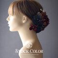 ブラック×レッドの和モダンカラー♪プラチナカラーのかすみ草が入った華やかなヘアパーツセットは、ウェディングドレスやカラードレス、成人式や白無垢など、洋装和装にお使いいただけます。