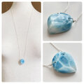 天然石 ラリマーの大粒ネックレス (シルバー925製・A)
