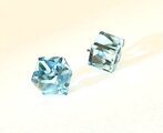 【オーストリア製 swarovski アクアマリンCAL 大粒 斜めキューブ ピアス】