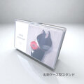 オプションの名刺ケーススタンドは、ケースを閉じたままツメを開くだけでスタンドとしてご利用いただけます。