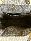 いつも素敵なバッグをありがとうございます。今回も大満足です。柿渋染めとバティックの渋い柄の取り合わせが絶妙です。丸い木の取手は持ちやすく、アクセントのボタンもいい感じ。華美さんのバッグはとてもセンスが良い上にこまかいところまで配慮が行き届いており、大変丁寧なお仕事です。またご縁がありましたらよろしくお願いします。