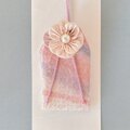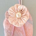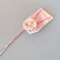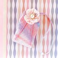お守り袋には同生地で作った花をあしらいました