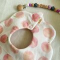 赤ちゃんのほっぺのようなふわふわ柔らかなお色柄の、両面ダブルガーゼを使用したスタイをお作りしました。