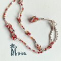 ☆赤い砂粒ビーズのネックレス・グラスホルダーとピアスのセット(#1197)