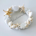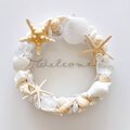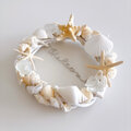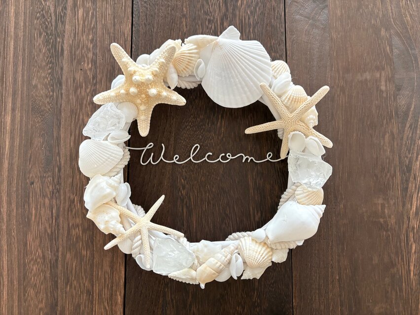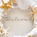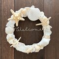 白い貝殻と相性が良いプレーンアルミワイヤーのWelcomeのロゴや