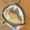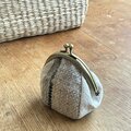 手紡ぎ糸の織地を使ったコロンとした形のがま口ポーチ