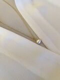約8mmほどの淡水バロックは、その歪なシェイプがかしこまり過ぎない存在感。