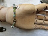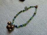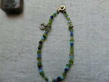 ヴェネチアの若草色のセミクリアのビーズにアジアの古いビーズをミックスして組んでみました。