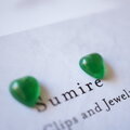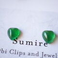 小ぶりなハートシェイプは控えめながらも存在感があり、落ち着いたグリーンカラーが耳元にナチュラルな彩りを添えます。