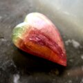 表面の内包物がスイカの種の様に見える、まさにウォーターメロンにふさわしい天然石のハートシェアイプ。