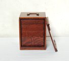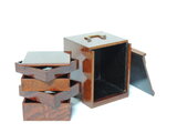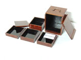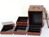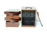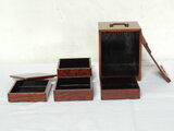 小さい箱の中に蓋のついた四段のお重が入っています。