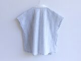 水彩絵具で描いたような、濃淡のある手描き風ラインが何とも涼しげな、白&ライトグレーのストライプ柄の国産リップル生地を使った、爽やかな着心地のフレンチスリーブ・ブラウスです。