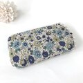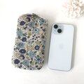 #スマホケース #携帯ケース #青 #ブルー #yuwa #リバティ #花柄 #くるみボタン #軽い #布 #手縫い #サングラスケース #サングラス入れ #母の日 #誕生日 #プチギフト #iphoneケース #ふわふわ #スリム #スマホポーチ #フェルト #携帯ポーチ #iphoneポーチ #くるみ釦 #大人かわいい #プレゼント #ギフト #新生活 #新調