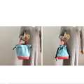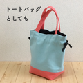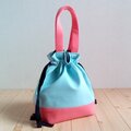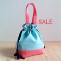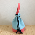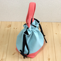 【セール】優しいカラー リボン巾着トートバッグ ライトブルー✕コーラルピンク 607