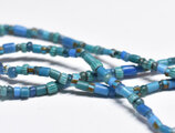 多彩なブルーの管型のビーズはホワイトハーツと呼ばれるアンティークビーズです。芯(ハート)部分が白いことからこう呼ばれています。こちらは19~20世紀頃のヴェネチア産のビーズです鮮やかなブルーやターコイズブルーなど様々な色合いが楽しめます。