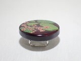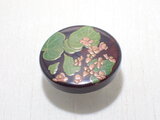 円形の木に蒔絵をした帯留めです。