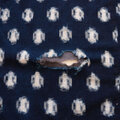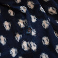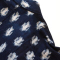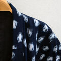 藍の深い青色と絣の織り柄が織りなす繊細なデザインは、日本の伝統的な染織技術の証。