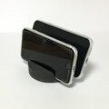 スマホを立てたまま、タップしたりスワイプしても倒れたり動いたりしません。2つの自立角度でニュースや動画も楽に見ることができるスマートフォンのスタンド(スマホスタンド)です。タテにもヨコにも置け、画面の見え方などで使い分けることができます。手前が直角に近く、後ろが少し斜めに立つので、充電の時など2台同時に立てたいときにも便利です。