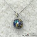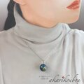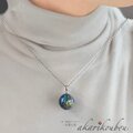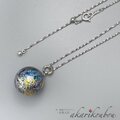 【sv925】螺鈿ペンダント 18mm玉 ブルー 孔雀羽根模様 純金箔 プラチナ箔 螺鈿アクセサリー