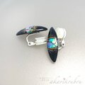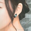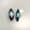 黒漆塗りがベースの螺鈿細工イヤリング。