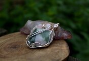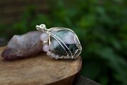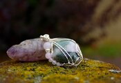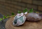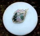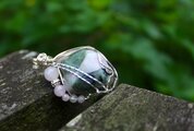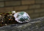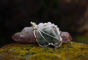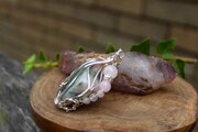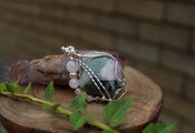 艶があり、大きく、高品質の子をシルバーのんワイヤーで巻いて、ローズクォーツのビーズを付けました。