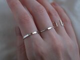 小さな横長の四角がポイントのミニマムなシルバーリング。