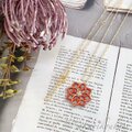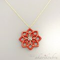 【14KGF】漆ペンダント 赤 螺鈿 純金箔 花モチーフ 朱漆 透かし彫り 漆アクセサリー