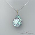【sv925】螺鈿ペンダント 変わり塗り 洋梨型 オーロラパール色 プラチナ箔
