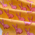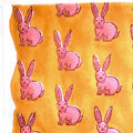インドブロックプリント生地 [50cm単位] ラビットピンク オレンジ地 うさぎ 兎 バニーファブリックIF0004