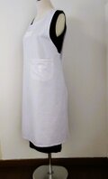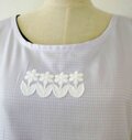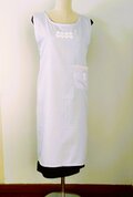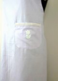 優しいラベンダー色のエプロンに可愛いレースのお花が胸元にアップリケされた