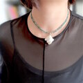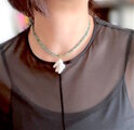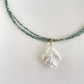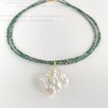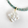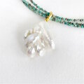 ターコイズに合った、大粒のケシパールのショートナー(ペンダント)を