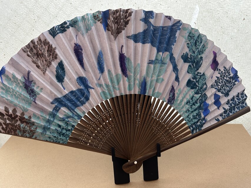 1枚の扇子用和紙に両面銅版画で仕上げています。