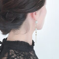 繊細なビーズボールに、クリスタルの透明感とゴールドの艶を重ねた、ロングチェーンの ピアス/イヤリング
