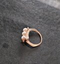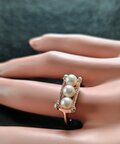 照り、光沢のある高品質のあこや真珠を3粒並べてリングにしました
