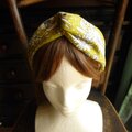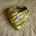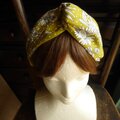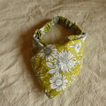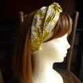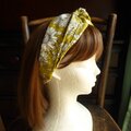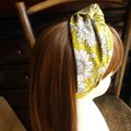 黄色地にモノトーンの花柄のオックス地のクロスヘアバンドです。