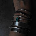 ブルーグリーンと母岩のブラウンのバランスが魅力的なターコイズをシルバーバングルに仕立てました。