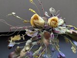 カナリヤ色のばらのつぼみを束ねた花飾りです。