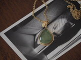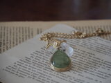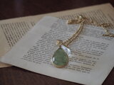 美味しそうな(!)プレナイトでネックレスを作りました。バチカンに葡萄の葉を一枚、飾りました。