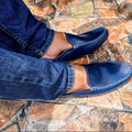 ◇本革ローファーサンダル◇無料サイズオーダー◇受注生産◇本革◇ネイビー◇色変更無料◇ドライビングソール仕様◇