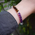 水晶、紫水晶、アベンチュリン、瑪瑙、虎目石を合わせてブレスに仕立てました。