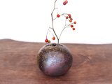 上部が裂けたような球体の一輪差し。土の素朴な雰囲気は野花との相性がよく部屋のインテリアとしても楽しんでいただけます。