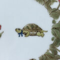 チコロット❤️すべて手描き❤️染付け❤️小判型❤️だ円皿❤️メイン皿❤️可愛い❤️童話❤️うさぎとかめ❤️チューリップ
