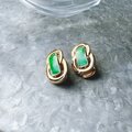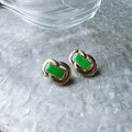 Y1169-ヴィンテージイヤリング・U.S.A. Green Enamel Paint Gold Tone