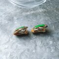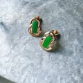 グリーンのエナメルペイントがアクセントになった、ゴールドトーンダブルフープイヤリング。