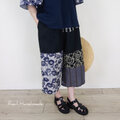 [予約販売] ブラックリネン×多素材アシメパッチ・クロップドパンツ〈セットアップ可〉