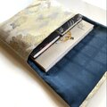 御朱印帳とは、神仏の霊(たましい)が宿るもの。その大切な御朱印帳をお守りする袋には「保護する役目」と「美しさ」が必要です。この2つの要素を核に、本作品を設計・製作いたしました。