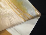 地色はピンクがかって見えますが白地に金糸が織り込まれており、光の加減によるものですのでベージュっぽい色合いです。