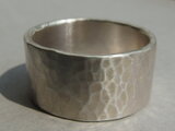 こちらは10㎜幅のシンプルな平打ち槌目シルバーリングです。